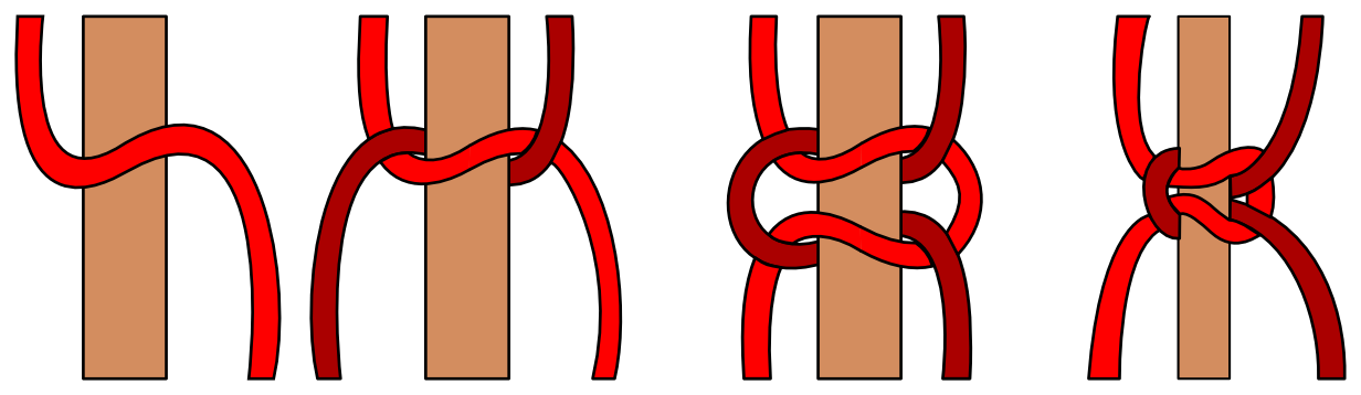 - Notes on Macramé: See “How to tie a square knot” at the bottom of the page. Shows a lovely illustration of a square knot.